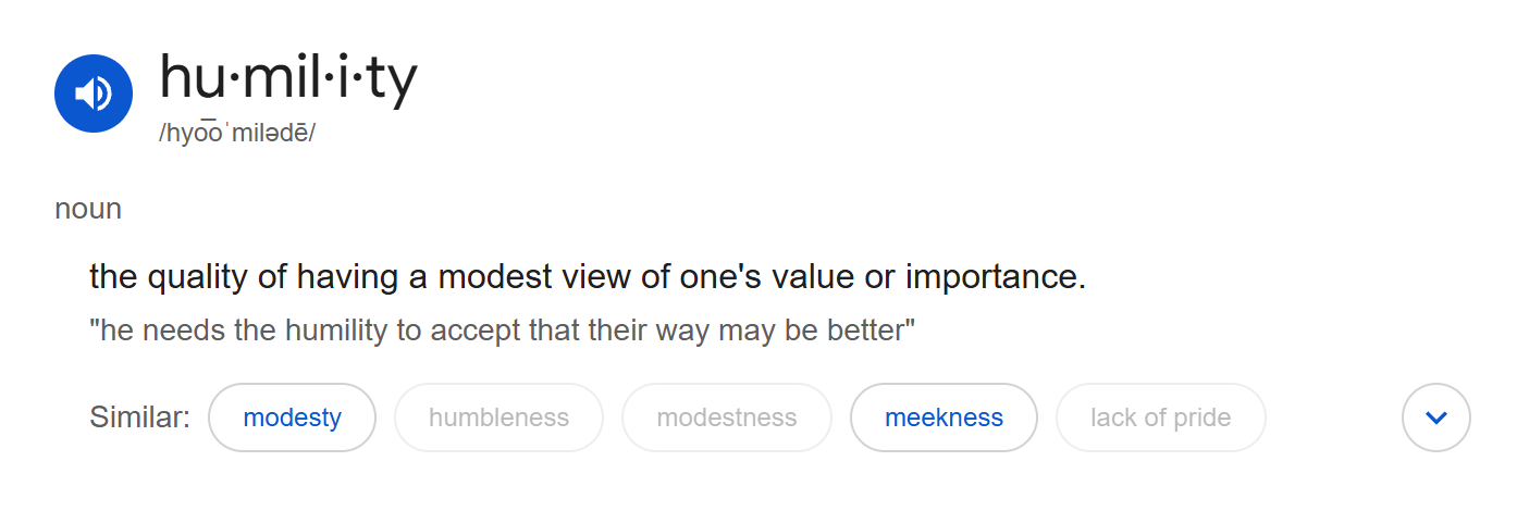 Modesty is another term conflated with humility. Modesty is the outward behavior, while humility is the internal attitude.